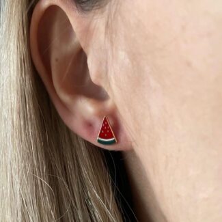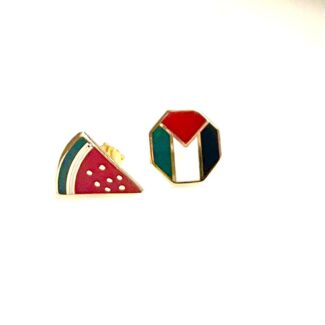 Watermelon & Palestine Flag Enamel Earrings – 18K Gold