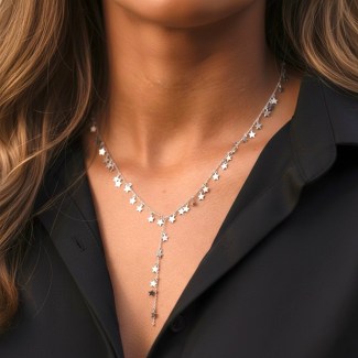 Sparkle with our Starlight Cluster Necklace! This long, elegant piece features a dazzling cluster of 0.5 cm stars, guaranteed to make a statement. Available in 18K Yellow, White, or Rose Gold. Standard Length: The standard rosary style length of this necklace is 50-52 cm. at the center. You can add length for an additional charge..