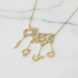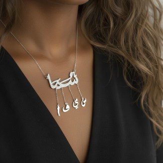 Features 3 to 6 names in Arabic or English script (size from 2-2.5 cm in width). Standard length 40-42 cm (customizable). A beautiful and sentimental piece.