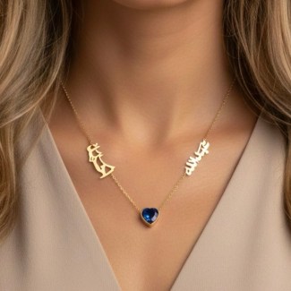 Wear your loved ones close. Custom 18K Gold necklace featuring two personalized names (2.5 cm each) separated by your choice of meaningful charm (Sweetheart Stone, Cross, Solid Heart, etc.). Available in Yellow, White, or Rose Gold. Design proof provided before creation.