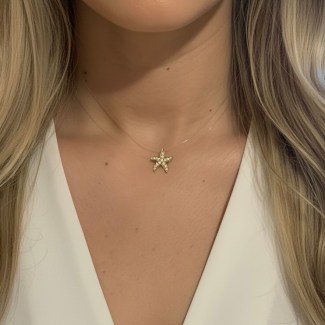 Embrace coastal elegance with a touch of magic. This “invisible” choker features a shimmering, crystal-encrusted 18K gold starfish suspended on a transparent wire, creating the stunning illusion of a sparkling charm resting directly against your skin.
