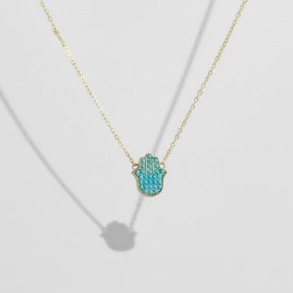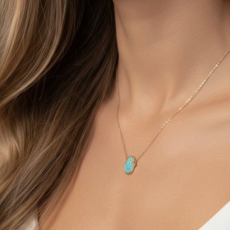 Adorn yourself with protection and good luck! This beautiful necklace features a 1.5 cm gemstone hand pendant, a modern interpretation of the powerful Hamsa Hand talisman.