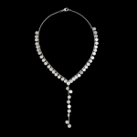 A balanced design with 18 disks on each side of the neckline, leading to a dramatic 8.5 cm center drop containing 10 additional disks.