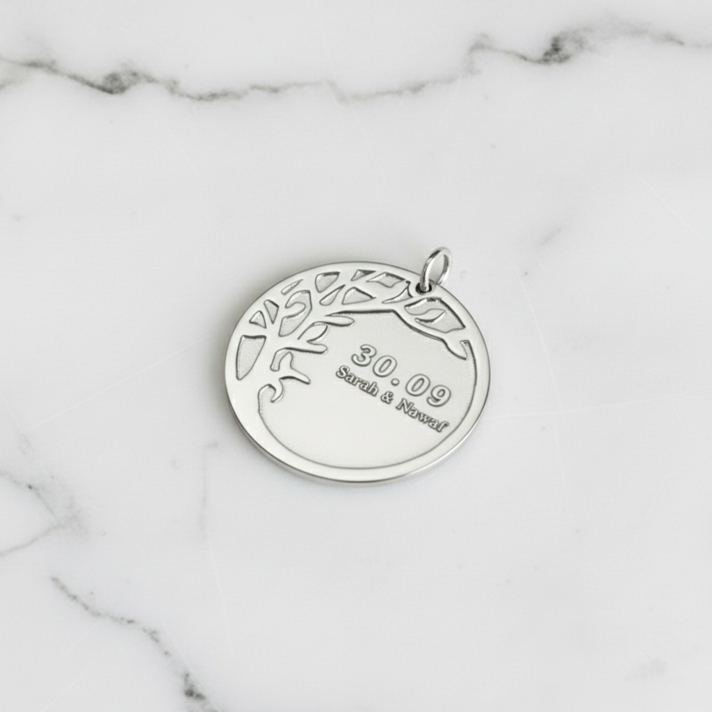 This Tree of Life Coin is a sophisticated, personalized piece of jewelry that balances symbolic artistry with modern minimalism.
