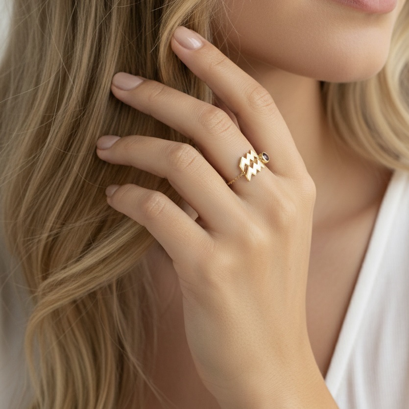 Aquarius Sign Chain Ring – 18K Gold
