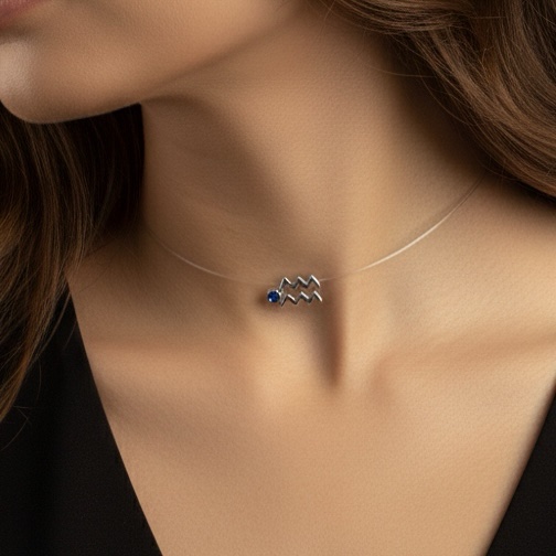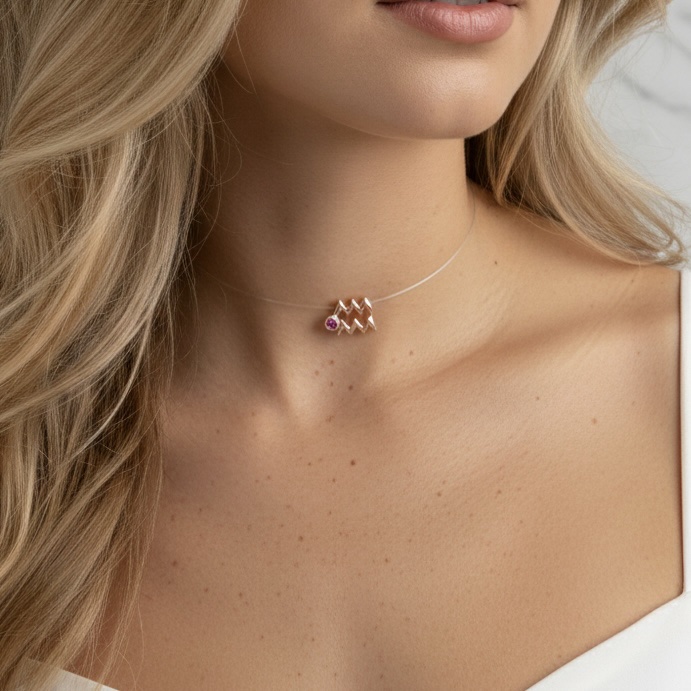 Discover jewelry that reflects your soul. Crafted with 18K Gold and your favorite gemstone, this Horoscope Sign Invisible Choker is the perfect way to represent your star sign or gift your favorite Aquarius.
