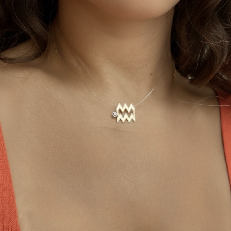 Aquarius Sign Invisible Choker – 18K Gold