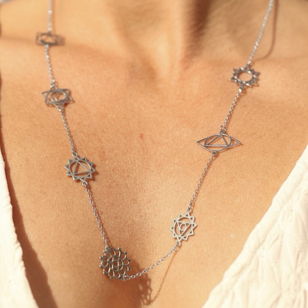 The Meaning: The word 'Chakra' originates from the Sanskrit word for 'wheel,' representing a whirling vortex of energy. This piece symbolizes the seven major energy centers within the body, promoting balance and harmony.