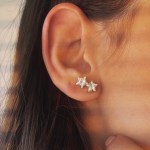 Adorn yourself with the ethereal beauty of the night sky. These elegant earrings feature two brilliant stars with high crystal clarity side by side that catch light from every angle, creating a delicate yet radiant focal point.