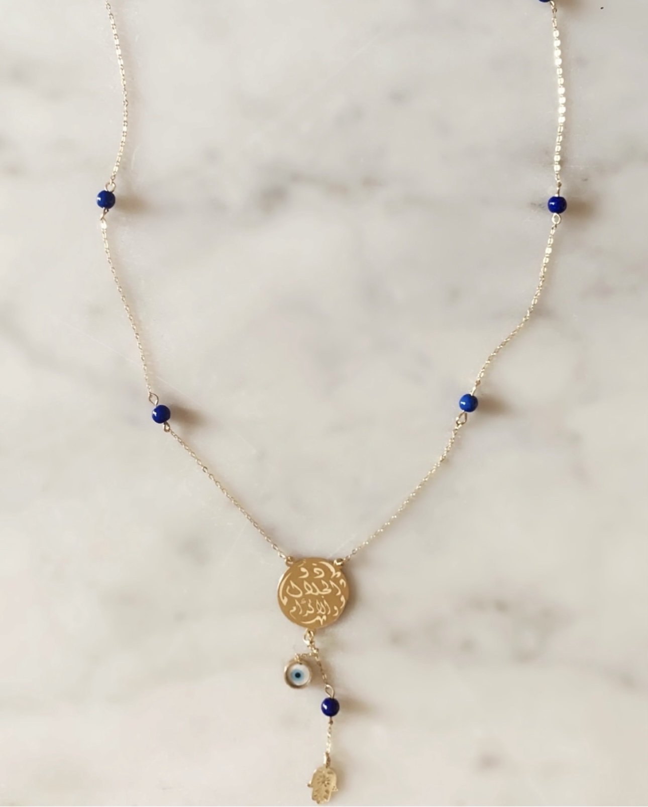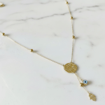 • Custom Charms: Includes up to three signature charms (such as an Evil Eye, Kaff Fatma, Horoscope, or Initial) hanging at a delicate 3 cm drop.