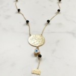 • Perfect Dimensions: A 2.2 cm center coin set on a 55 cm chain, 3 gold balls or stones (color of your choice) on each side of the necklace chain, at 3 cm charms drop, full length is 58 cm—ideal for effortless layering.