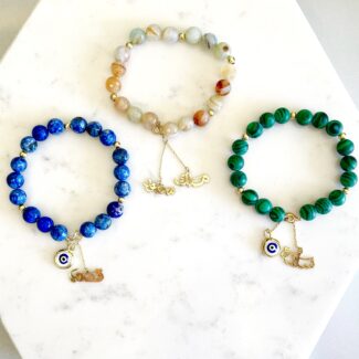 The Greek Mythology Bracelet is made of a Greek God/ Goddess the size of 1.7 cm connected to a string of your favorite color. Made with Sterling Silver/ Gold Plated.
