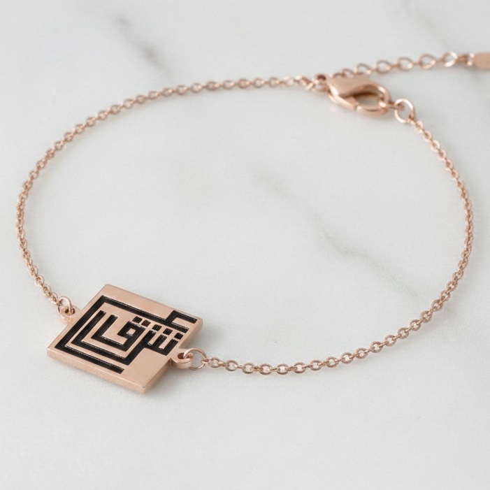Celebrate the timeless beauty of Arabic heritage through a contemporary lens. This bespoke bracelet features a 1.7 cm square pendant showcasing the geometric precision of Kufic calligraphy. Whether it is your name, the name of a loved one, or a word that holds deep personal power, this piece transforms language into wearable art.
