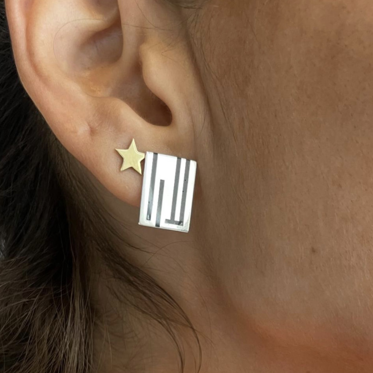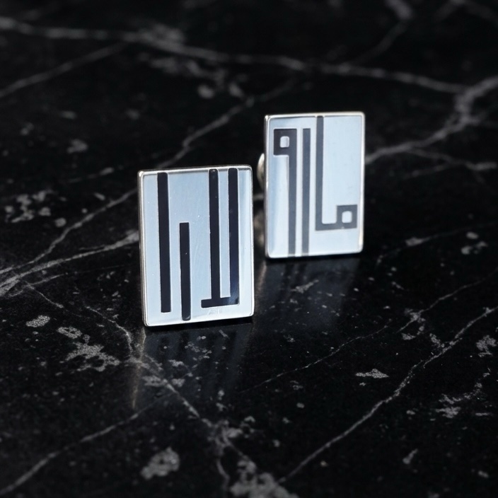 Celebrating tradition and connecting it to innovation, these Kufic Calligraphy earrings use the essence of Kufic script, transforming your name or your loved one's name, or even some powerful words into wearable art. Each piece is individually and uniquely designed by Graphic Calligraphy Hala Qattan.