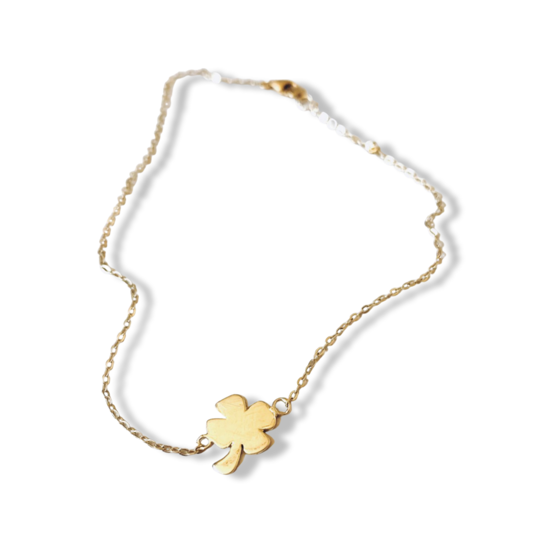 18K Yellow, White or Rose. A gorgeous lucky charm anklet that consists of the four-leaf clover. It makes for a sweet little gift for someone special (or as a treat for yourself!)