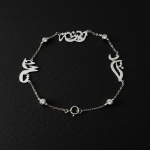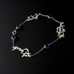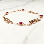 Celebrate the connections that matter most with a piece designed to be as unique as your family story. This exquisite 18K Gold bracelet features your chosen names—from two up to five—rendered in flowing, elegant Arabic or English calligraphy. To create a striking visual rhythm, each name is separated by a vibrant, hand-selected gemstones, be it turquoise, clear or Ruby Red, we offer you a wide selection of gemstones to choose from adding a touch of color.