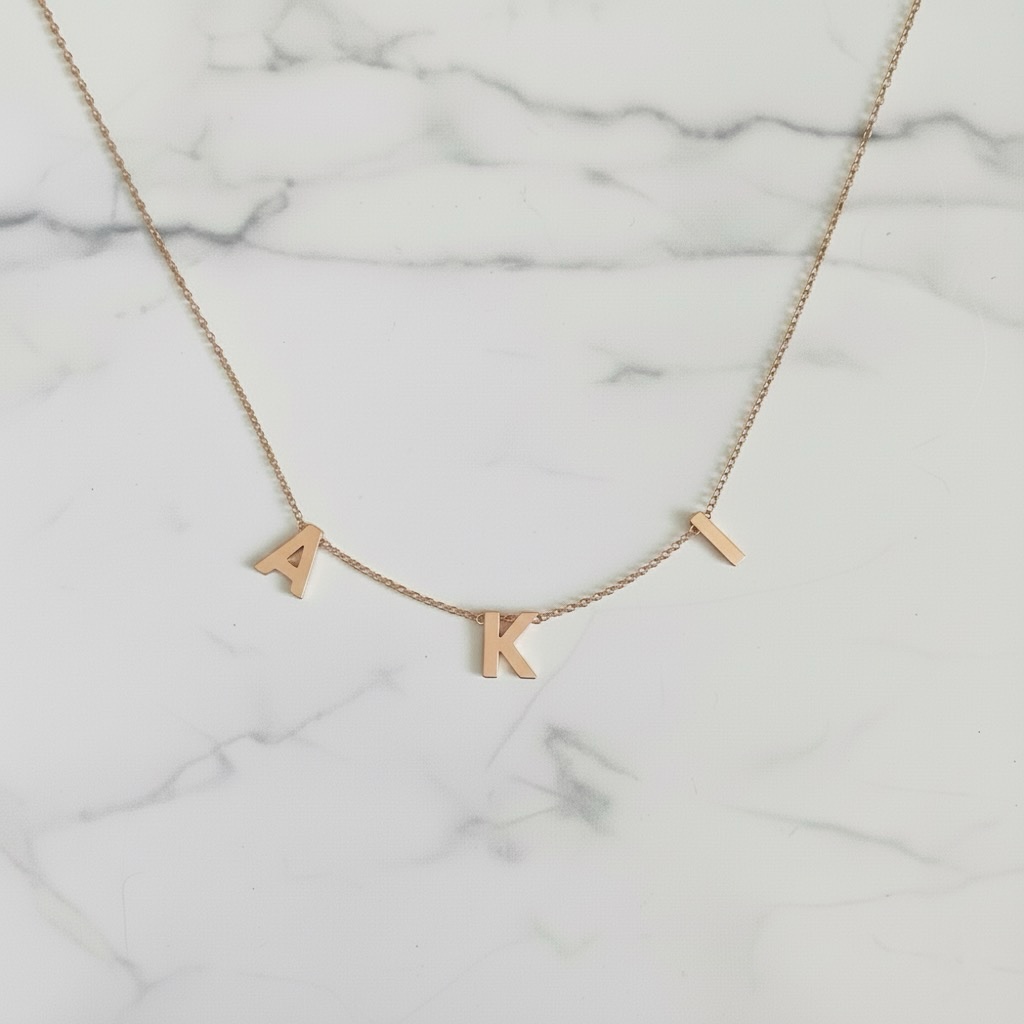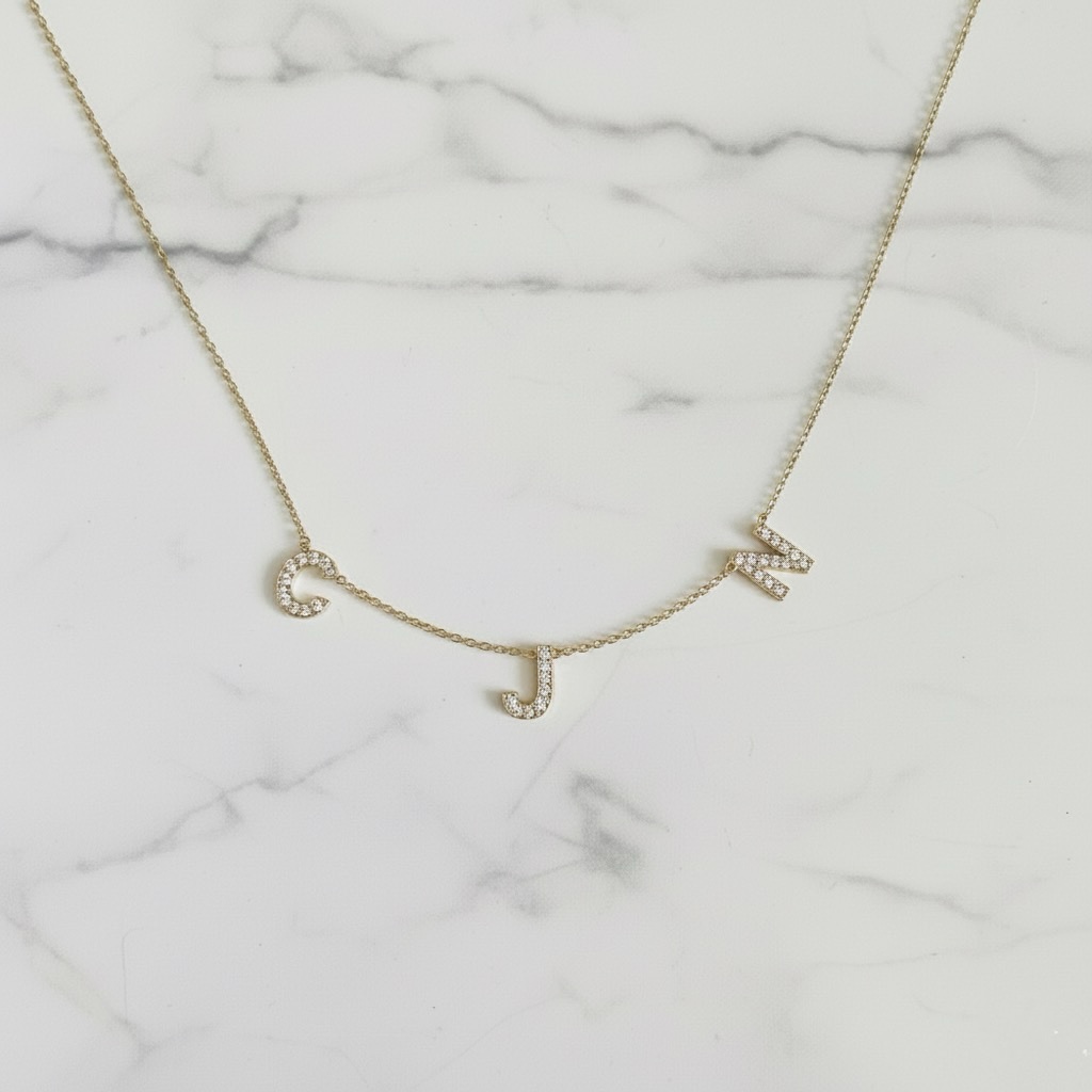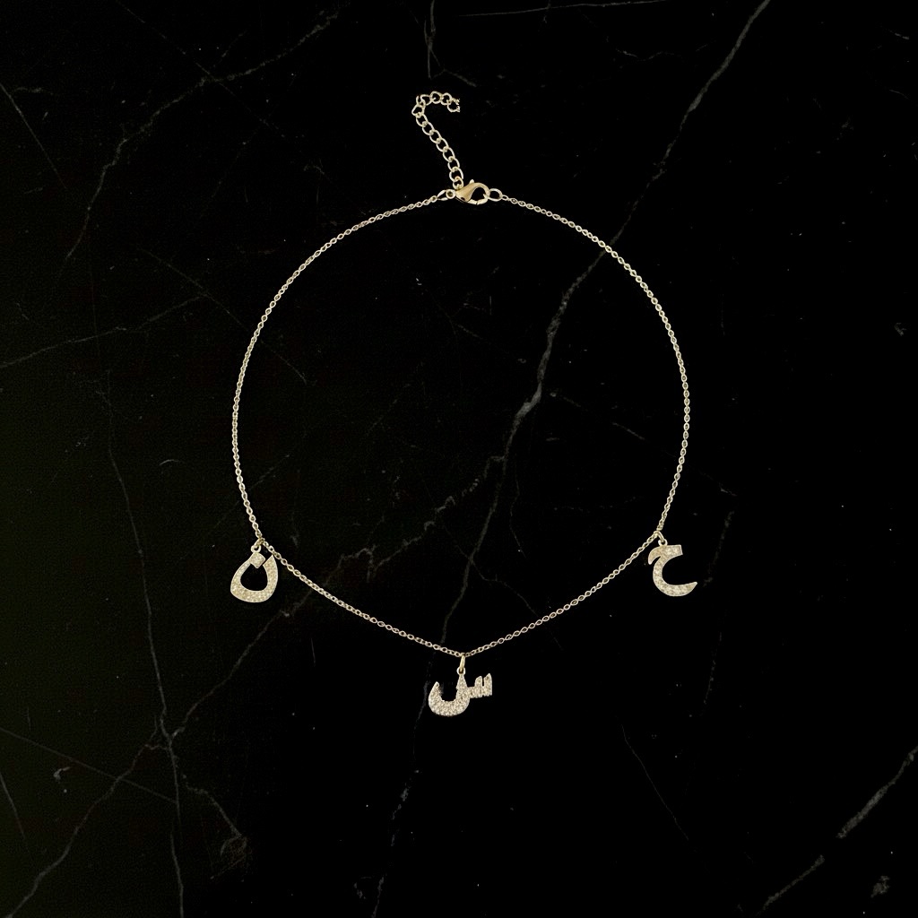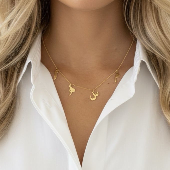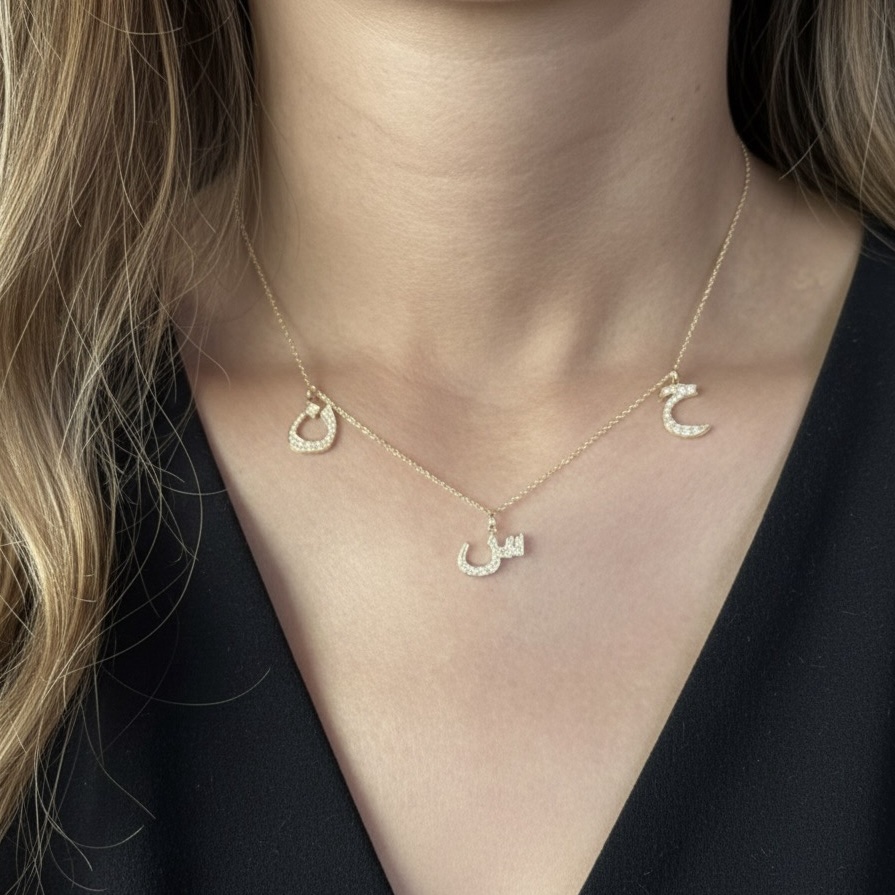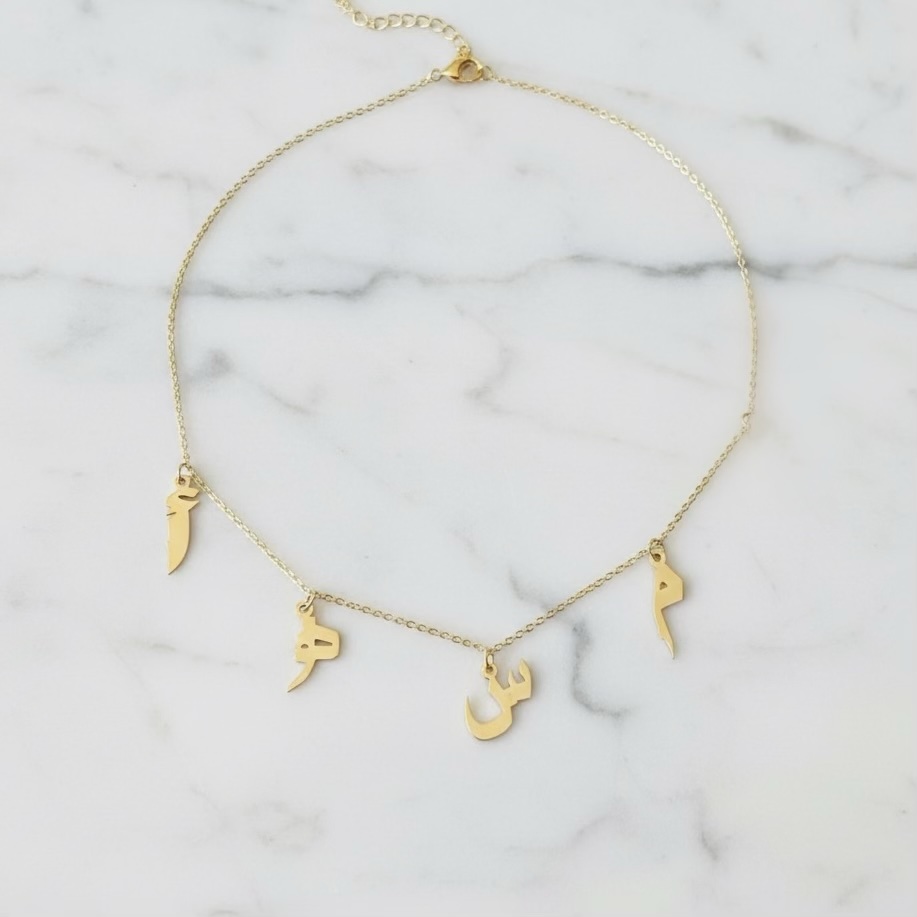 Mutli-Letter Necklace (Arabic / English) – 18K Gold