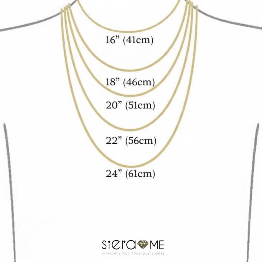 Suspended from a delicate yet durable 18K Gold link chain that sits elegantly on the neckline with a standard length of 40-42 cm.