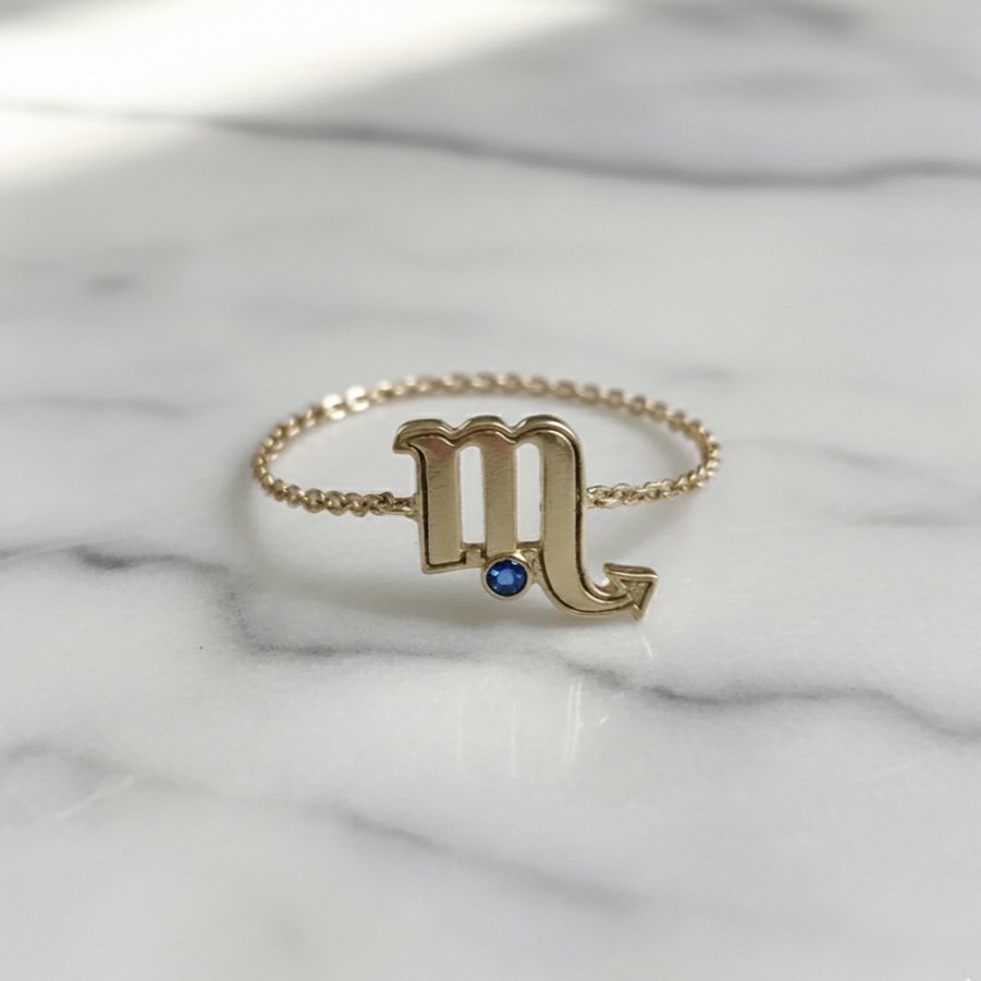 Discover jewelry that reflects your soul. Crafted with 18K Gold and your favorite gemstone, this Horoscope sign chain ring is the perfect way to represent your star sign or gift your favorite Scorpio.