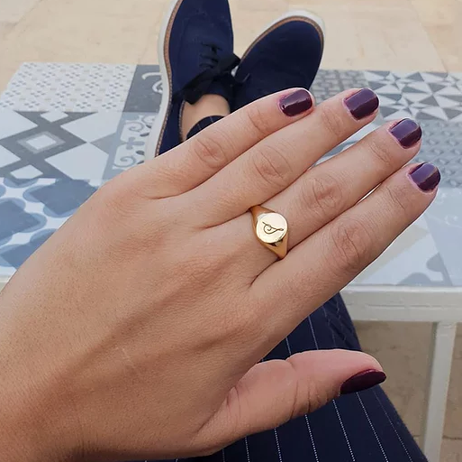You can design your Signet Ring with your detailed preference on the Ring. The circle of the Signet is 1.2 cm in size, and Ring can be Free Size (Open-ended) or custom made to fit your finger size in US sizes. Made from 18K Gold (Yellow, White or Rose)