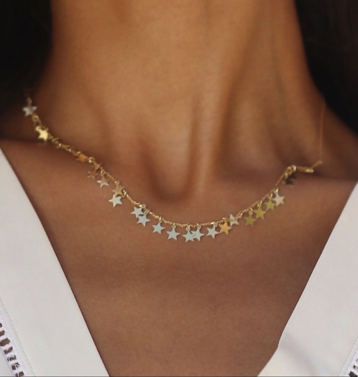 Shine brighter than the night sky with this enchanting choker/necklace, carefully crafted to feature a beautiful cluster of pretty stars that are guaranteed to make your neck sparkle.
