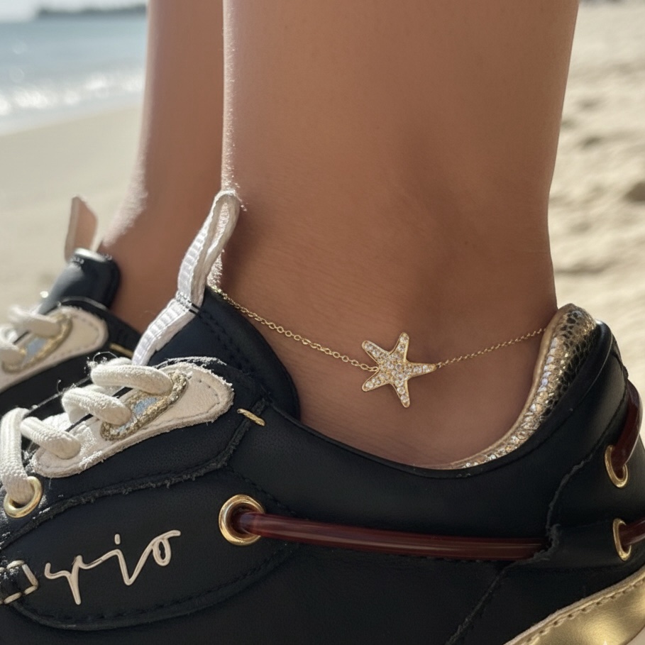 The Starfish is 1.7x1.7 cm in size, studded in any color of stones you desire.