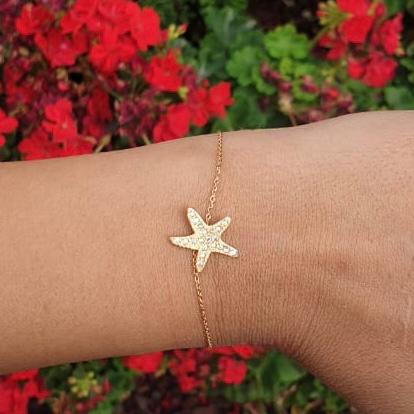 The Starfish is 1.7x1.7 cm in size, studded in any color of stones you desire. Made with 18K Yellow, White or Rose Gold.