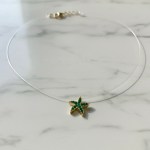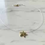 Embrace coastal elegance with a touch of magic. This “invisible” choker features a shimmering, crystal-encrusted 18K gold starfish suspended on a transparent wire, creating the stunning illusion of a sparkling charm resting directly against your skin.