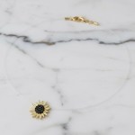 This enchanting piece features a beautifully crafted sun pendant made of 18K Gold, accented with delicate, sparkling gemstones at its center and secured with an 18K Gold clasp. Q