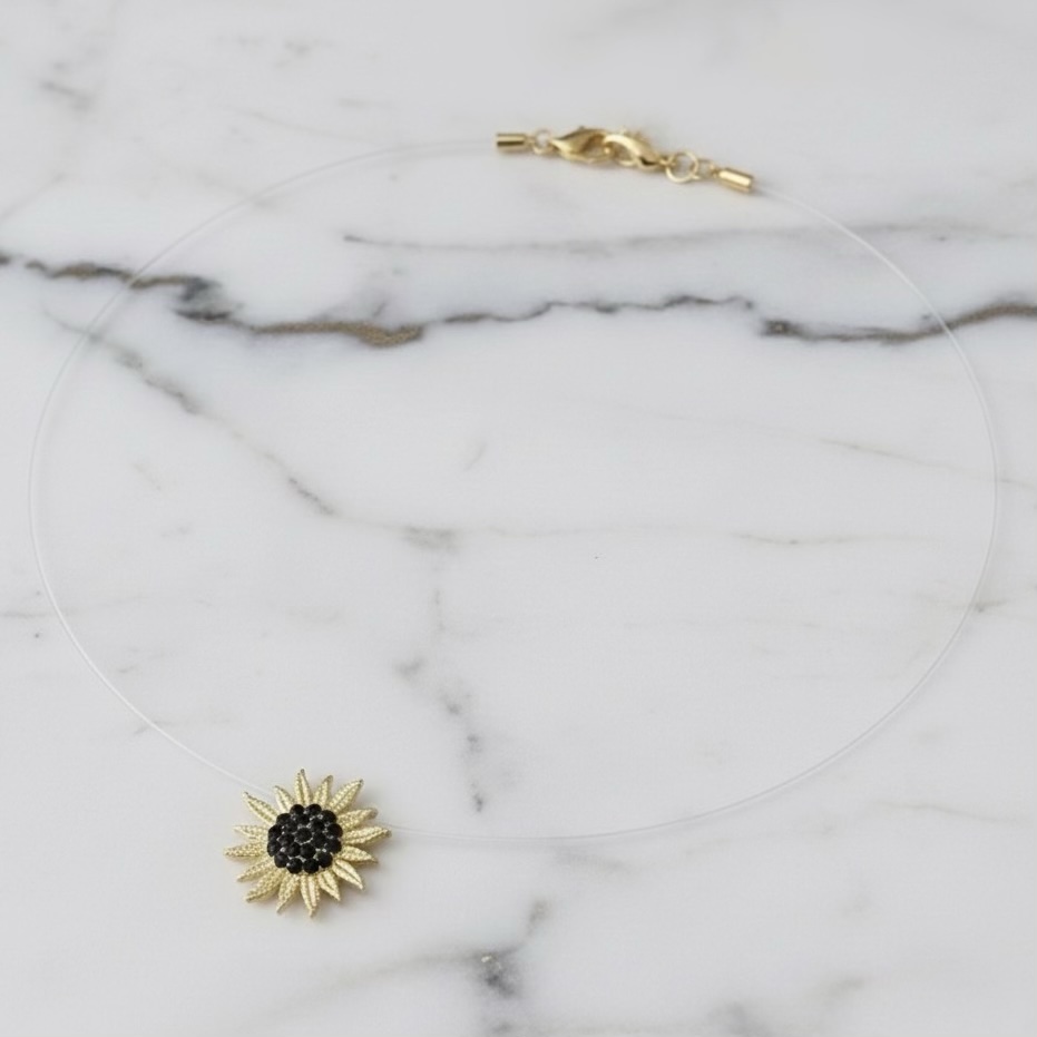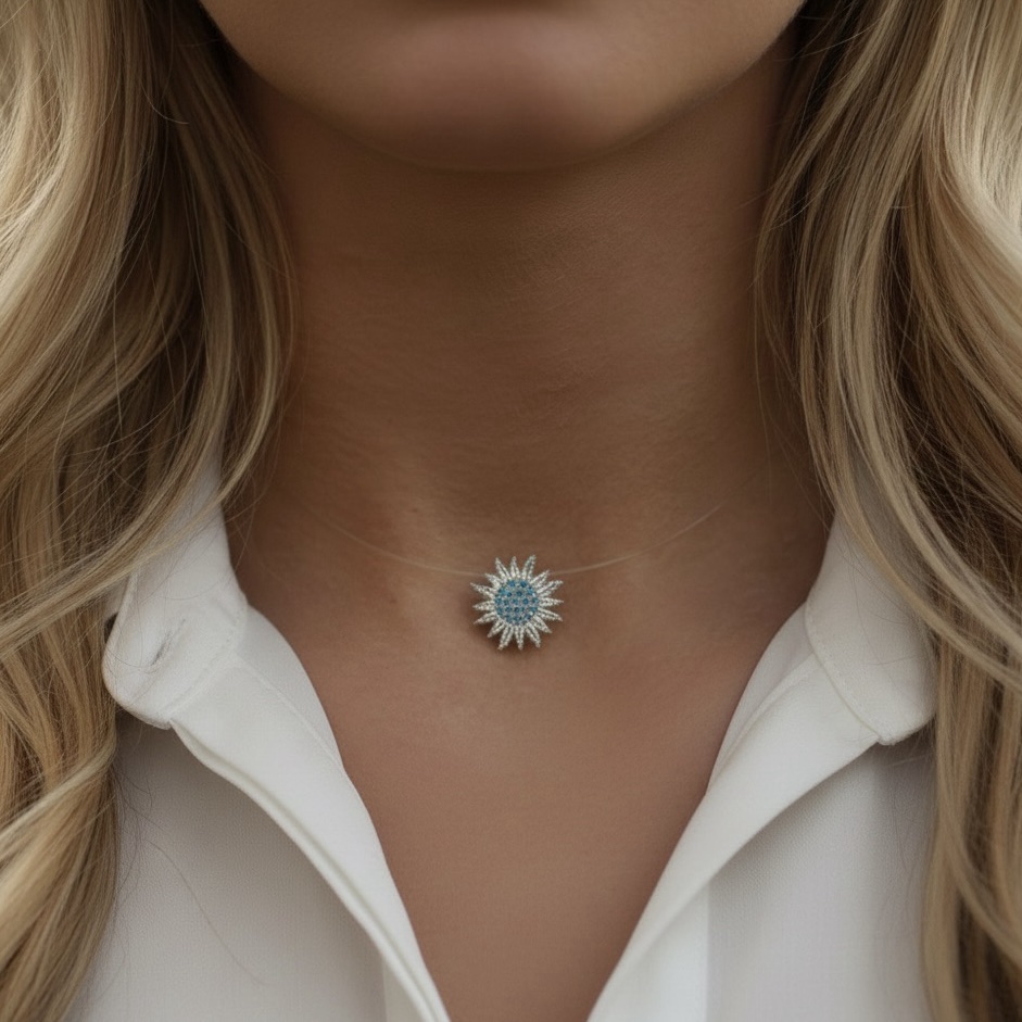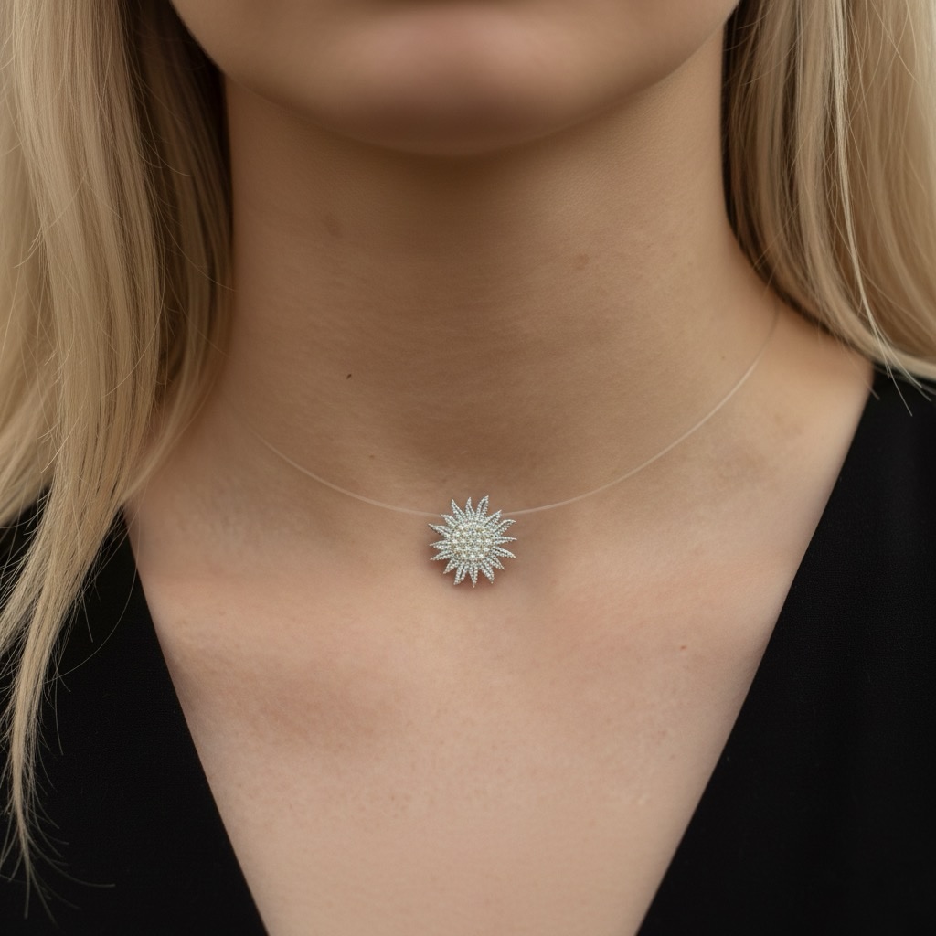 The pendant appears to float magically on your neck, suspended by a nearly invisible, high-quality nylon wire. Finished with a secure clasp, this choker offers a modern, minimalist look while allowing the brilliant sun symbol to take center stage. It’s the perfect, subtle statement piece to add a touch of warmth and light to any outfit.