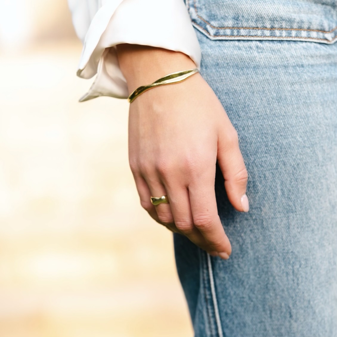 Bold yet contemporary, this abstract bracelet is the defining statement piece for your Jewelry Collection. Inspired by the natural movement of light and water, the design is a symphony of sweeping curves and sculpted angles, ensuring a unique silhouette from every perspective.