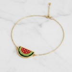 The watermelon charm measures 1.6 cm in width, making it a subtle yet striking statement piece. Length is 16-17 cm unless requested otherwise in the ‘Additional Details’ section.