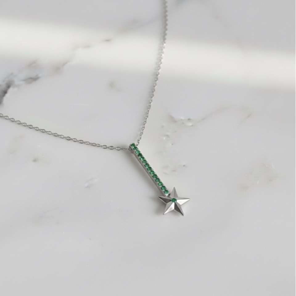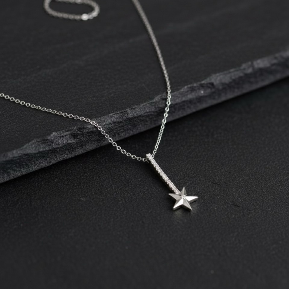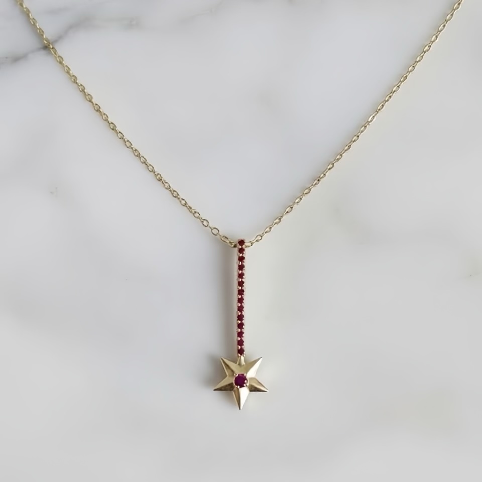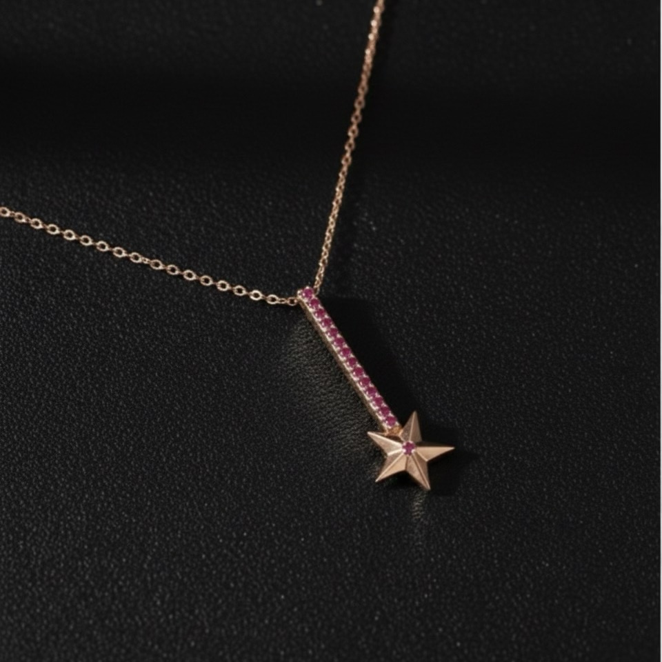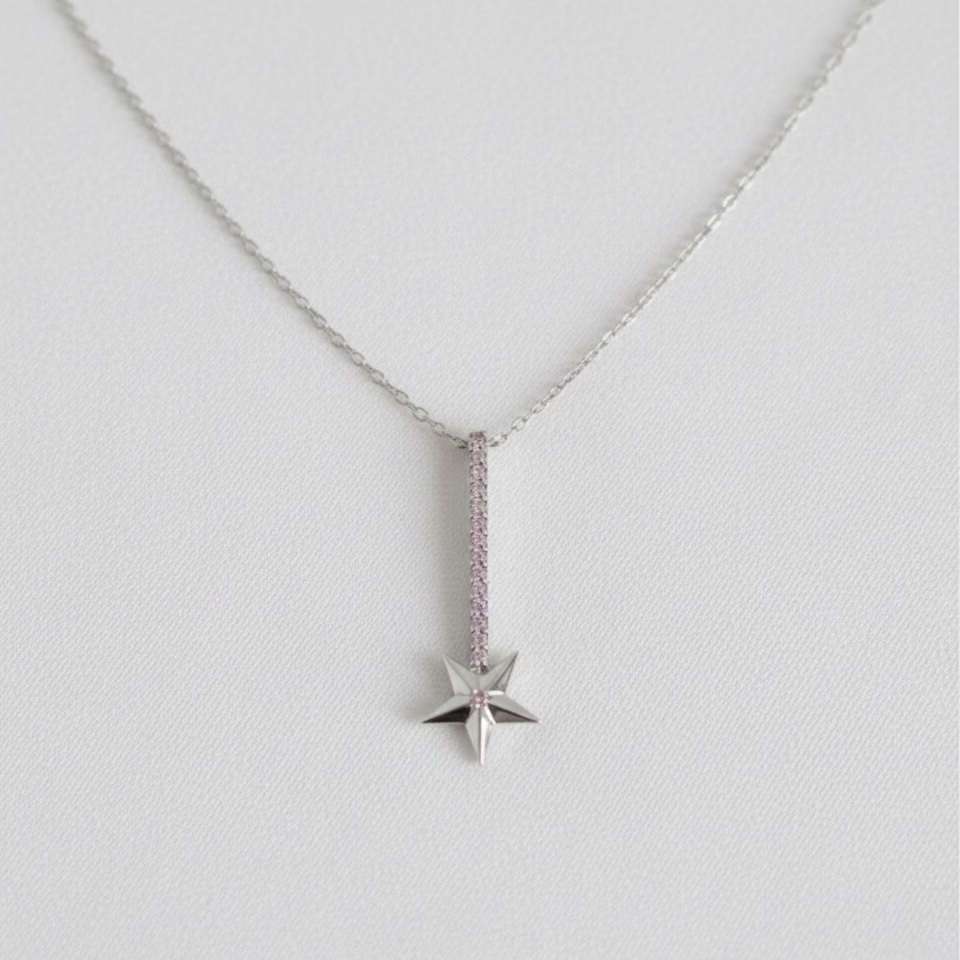 Star Size: Elegant 1.2 cm star pendant, set with a mesmerizing center stone.